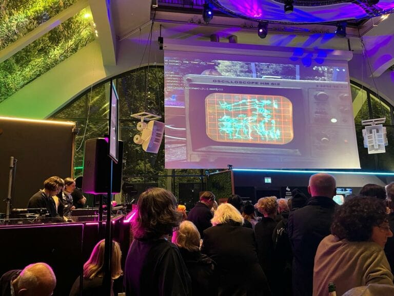 The idea behind this project is to combine digital and analogue technologies to create a hybrid visual performance/installation. Using analogue and digital video cameras, an oscilloscope and a laptop, input signals are switched on and off, creating various feedback loops. As a visual reference to Nam June Paik's work and analogue video synthesis, the project was created as part of the opening of the Paik exhibition at the Museum Ostwall, where a similar setup was used for live visualisations. All media are interconnected and linked via live coding, with the code for image generation being written in real time. In the future, additional oscilloscopes will be connected to create a multimedia art installation. Algorithms are increasingly determining our everyday lives. The intention of this installation is to use them for creative and non-normative use of media, as Paik did decades ago with analogue technology such as televisions and cameras.